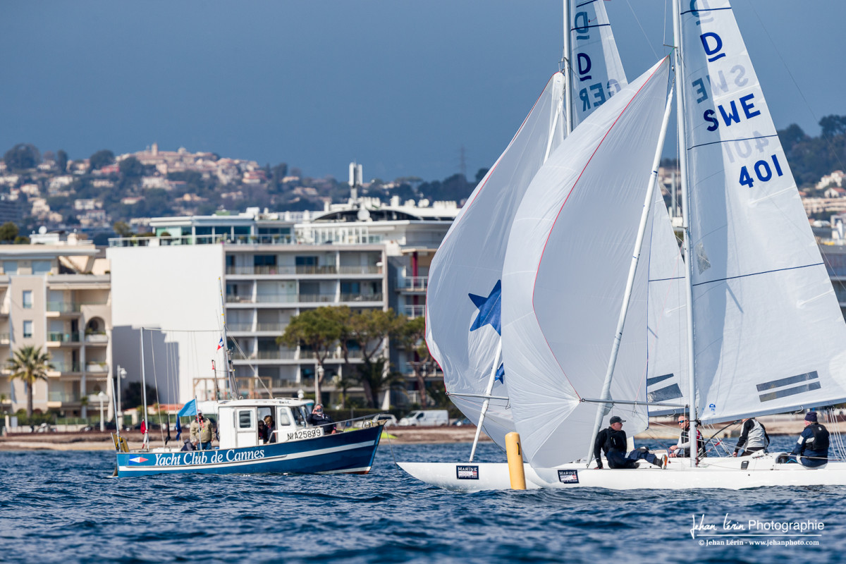Pourtant, la journée s'est bien annoncée avec 12 noeuds de vent établi dans le 80 Est. Dès 12h00, le premier départ est lancé avec un parcours de 1,5 mille qui s'étire de la Pointe du Palm Beach jusqu'à proximité du phare de la Fournigue. Alors que le vent s'effondrait à 5 noeuds dans le dernier bord de vent arrière, c'est l'équipage français de Gery Trentesaux (FRA428 - Bande à part) qui tire son épingle du jeu et franchit la ligne devant le suisse Dirk Oldenburg (SUI313 - Free) qui réalise une belle opération, suivi à la troisième place de la britannique et membre du Yacht Club de Cannes, Gavia Wilkinson-Cox (GBR761 - Jerboa).